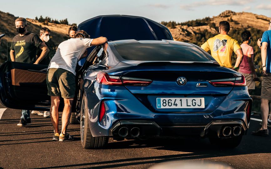 We’re in the car behind the BMW, and it’s interesting to see how the M8, with its more than 4.80 meter length and a weight close to 2 tons, easily connects through the curves. All of this accompanied by its sound, and while it’s not so loud, it is just enough to let you know that something very big is hidden beneath that hood. Without a doubt, as soon as you put your foot on the accelerator, you’ll disappear around the next curve.